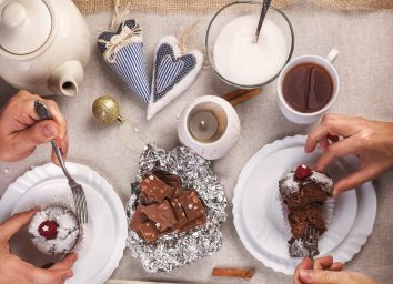 One of the easiest—and healthiest—desserts in dinner party land is a fruit and chocolate platter. If you have a vegan or someone with a lactose allergy in attendance, look for dairy-free chocolates or truffles. There are several on the market but many of them are made in the same facility as milk products so you may want to learn a bit more about the severity of your guest’s milk allergy before telling them they’re okay to get their chocolate on. And if you can’t find any dairy-free options, don’t sweat it! Pick up a carton of sorbet or make one of these 21 Vegan Desserts Anyone Can Enjoy.