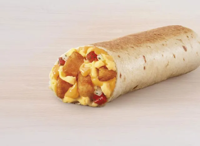 Both tomatoes and potatoes? Sign us up! Making your burrito “fresco” (aka, adding tomatoes) gives your breakfast a lycopene and Vitamin C kick, while potatoes are fiber-rich and full of potassium. With both eggs and cheese, the Cheesy Toasted Breakfast Burrito has 9 grams of protein without any highly processed breakfast meats, so in comparison to many of Taco Bell’s other offerings, this is your best option for a nutrient-dense breakfast that will keep you full and satisfied until lunchtime. Unfortunately, though, it’s probably in your best interest to skip a Baja Blast.