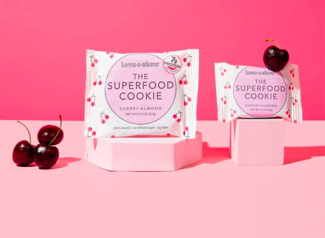 These deliciously chewy, just-sweet-enough cookies are the brainchild of Lauren Chew, a Chinese-American mother from San Francisco, CA. With a goal of creating wholesome snacking options, Chew concocted Love+ Chew cookies that are vegan, refined-sugar-free (these cookies are sweetened with date paste), grain-free, gluten-free, non-GMO, and soy-free. Also, we can attest that these cookies are truly delicious. Their line of mini cookies is the perfect snack that can help aid in portion control, and the cherry almond flavor boasts 4 grams of protein and even 4% of your daily calcium, iron, and potassium.