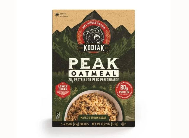Looking for an extra boost of protein in the mornings? Check out Kodiak’s Peak Instant Oatmeal, which contains an impressive 20 grams. “It’s rare to find instant oatmeal that has this much protein while also having a great balance of carbohydrates, fat, and fiber,” says Umo Callins, MS, RD, CSSD, CPT, sports and fitness dietitian and fitness coach with Well Rooted Health and Nutrition. “This is great not only for athletes who need a balanced breakfast but also for the everyday person who is looking for healthy options on the go!”