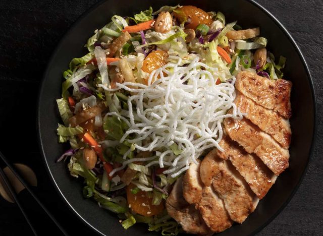 This salad combines a variety of healthful veggies, including cabbage, but the issue with this salad is that it has 21 grams or just over 5 teaspoons of sugar per serving, mostly coming from the mandarin vinaigrette. Like many dishes on the menu, sugar counts are high due to the sauces.