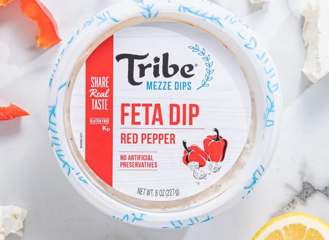 If you’re a die-hard fan of feta, you’ll drool over this red pepper dip. It’s made with briny feta along with Greek yogurt, roasted red peppers, and a bunch of aromatics including onion and lemon peel for a zingy dip option that pairs well with a homemade charcuterie board or over whole-grain pasta. This dip also contains olive oil, “a known healthier oil option, providing anti-inflammatory omega-3s,” Hill says. We also love that it contains a bit of satiating protein, with 2 grams per 2-tablespoon serving.