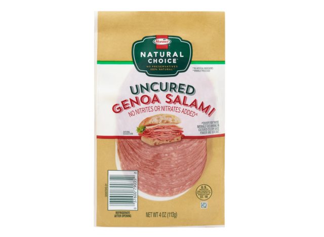 Most deli meats’ standard serving size is 2 ounces, but if you flip the container over, you’ll notice that this hard salami’s nutrition facts are based on a 1-ounce serving. That’s pretty misleading in our book, considering most of us are stacking our sandwiches with more than just an ounce of deli meat. And if you do, you’re getting 240 calories, 8 grams of saturated fat, and 40% of your daily value of sodium in one sitting!