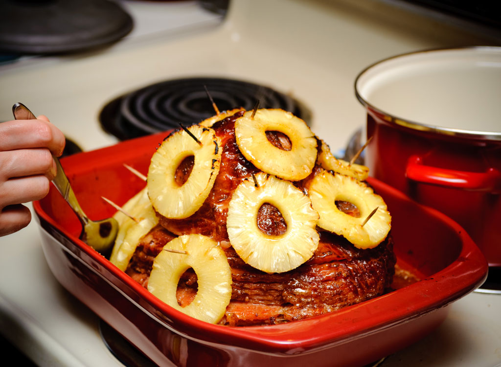 If you want as minimal work as possible for this holiday meal staple, try slow cooking your ham. If your slow cooker is large enough (a six-quart slow cooker would work best), you can easily toss in your ham with a brine and some of your favorite veggies to make a tender, juicy holiday ham. And, this isn’t the only holiday meal you can cook in your slow cooker. Try out these 50 Cheap and Easy Slow Cooker Recipes this holiday season to have a perfectly cooked meal without all of the stress of conventional oven and stove-top cooking.