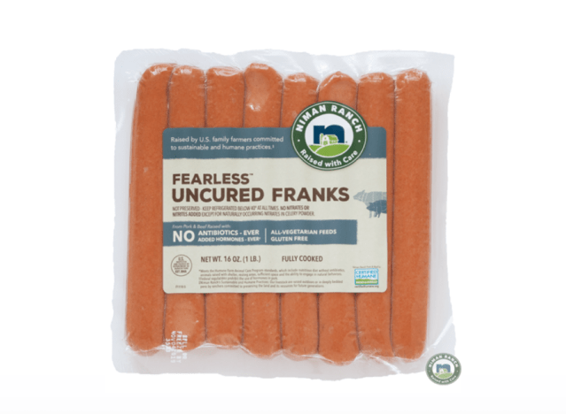 Niman Ranch Fearless Uncured Beef Franks are made with no added nitrites or nitrates. “Pricey but well worth it! Paired them with Sprouts hot dog buns and they were the best homemade hotdogs I have ever tasted,” one shopper shared.