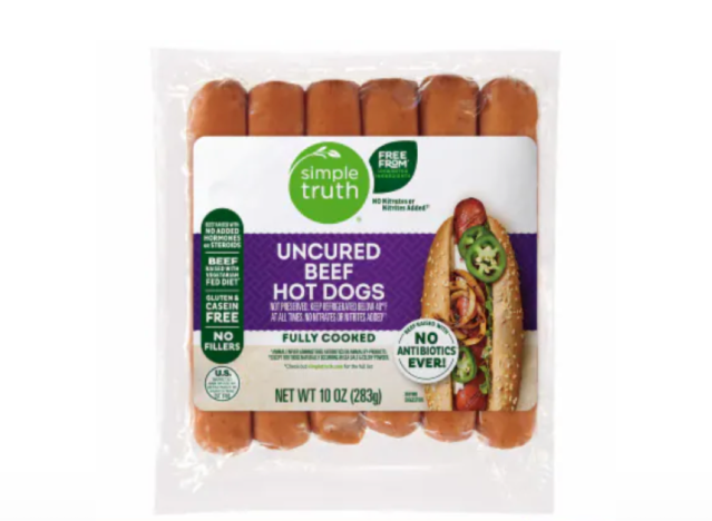 Trader Joe’s Uncured Beef Hot Dogs contain no added nitrates or nitrates (except those that occur naturally in sea salt and cultured celery powder). “I’ve been buying them all year! I keep them in the freezer with frozen buns for nights I run out of other options or need something quick. And for hot dogs, the macros are pretty good!” one Redditor said.