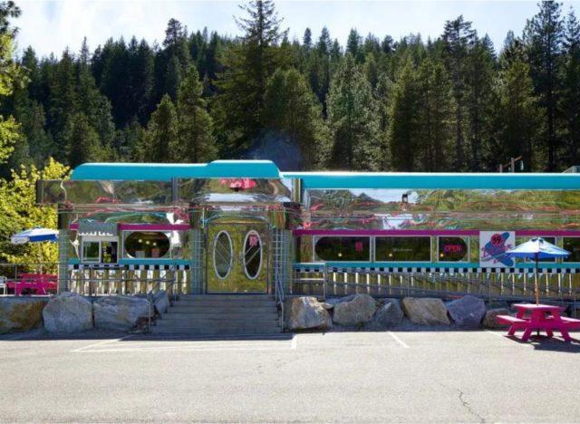 However, one of the best parts of the 59er Diner is its cabins—the restaurant has nearly a dozen themed lodging options on-premise. For instance, you can stay in the Paradise Bungalow, which is outfitted with tropical decor, the ‘70s Haus, which will surely transport you back in time, or the Big Bopper Bungalow, which has traditional sock hop decorations (think, vinyl records on the wall, checkerboard floors, and framed black and white portraits).