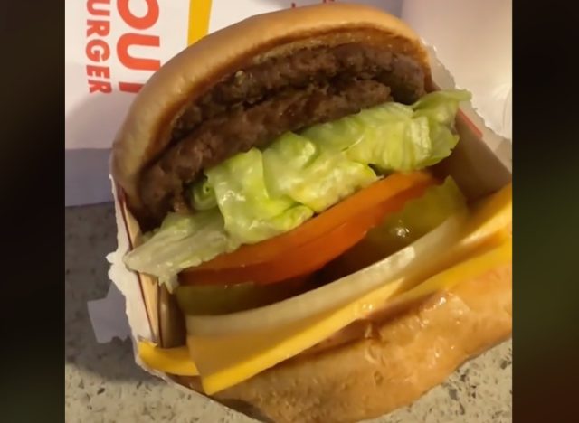 For those who enjoy their burgers with all the meat and none of the cheese, the Double Meat could be an appealing option. As advertised on In-N-Out’s website, this “secret” (or rather, not so secret) menu item includes two beef patties with lettuce, tomato, spread, and the option to add onions.