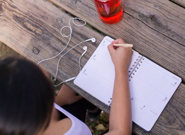 Some helpful tips to jumpstart weight loss? Perren cautions that when doing your fitness routine at home, “I always recommend my clients schedule their home workouts in their calendar and then set a reminder on their phones.” The habit will hold you accountable for maintaining a routine fitness plan. Another great bit of advice she shares with Eat This, Not That! is to “[get] your workouts done in the morning. The longer the day goes on, the more excuses you find to not work out. When you start your day with a workout, not only is it over and done with, but you energize yourself for the day.”