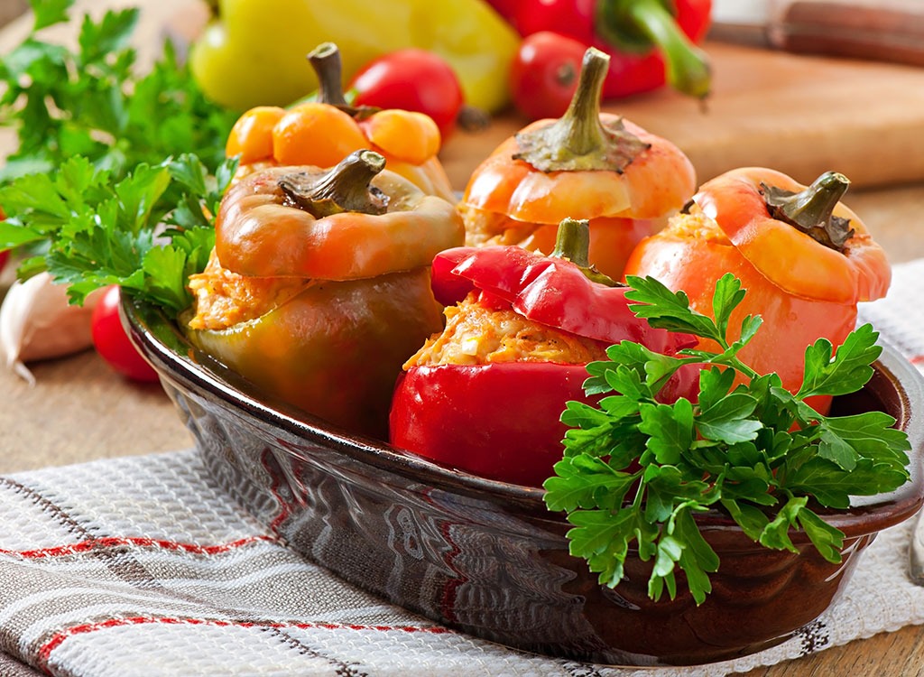 Peppers are overflowing with protein and fiber, making the perfect base for wholesome additions like turkey and calcium-rich cheese. You can even use your leftover stuffing, too! Looking for even more healthy and simple recipes? Check out these 20 Lazy Dinner Recipes for Weight Loss.