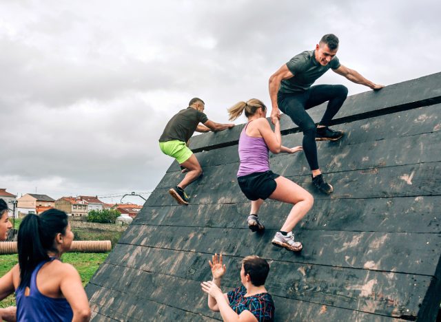 Obstacle runs are back on trend, and they’re a fun way to challenge you from beginning to end. You’re outside running for a set distance with lots of obstacles in between which require strength, power, coordination, and flexibility. If you want to break the monotony of just running and really want something more physical, then I recommend signing up for an obstacle course race and giving it your best shot!