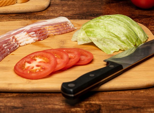 Layer lettuce, mayo, and turkey bacon between thick tomato slices, and enjoy as a sandwich. Serve with a side of edamame.