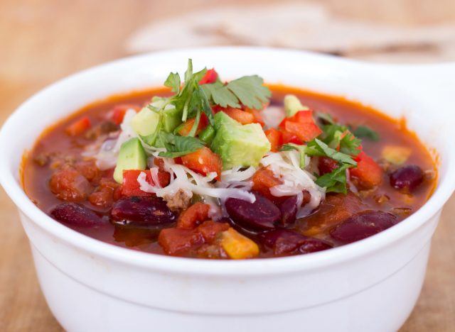 Chili is a winter staple for many, but it can take hours to prep and cook. If you don’t have the time, but are craving a hearty bowl of chili, this four-ingredient option is great. Not only is it simple to prepare, but its fiber and protein content also make for a filling meal. To lower the sodium in this option, be sure to compare the sodium content across various salsa brands, or consider swapping the salsa for fresh pico de Gallo.
