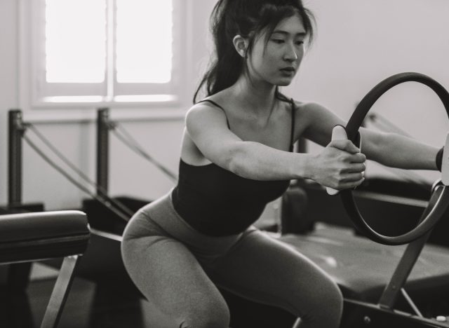 The benefits of Pilates and strength training can’t be denied. Performing strength exercises helps you sculpt lean muscle, enhance your balance, protect your joints, and even lengthen your life—science says so! “Through Pilates, you are able to use your body’s own body weight and/or resistance springs on the reformer or magic circle. The resistance helps build muscle and stability. The exercises work the entire body, creating strong muscles and balance,” Fuller adds.