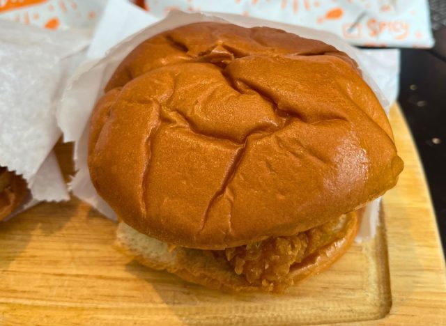 The taste: Crispy, tangy, lemony, creamy—this sandwich hit all the right notes and then some. It was mouth-filling and begged for another bite. There is only one chicken sandwich that can stand up to this monster of flavor and texture and it is its spicier brother.