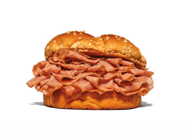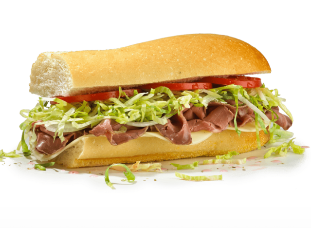 For a quick roast beef fix, head over to Jersey Mike’s, which serves a solid roast beef sub. It is tender, juicy, and so tasty. “Jersey mikes roast beef is top tier,” writes a Redditor. “Definitely not dry,” agrees another. “Arguably the best thing they offer. 80% of the time I get roast beef or the club,” a Facebook user agrees. “Jersey Mike’s cooks their roast beef in house. I know because I trimmed and tied hundreds of them when I worked there,” another commented on the same post.