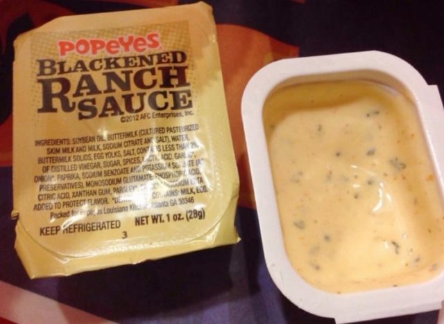 Ranch goes with chicken like peanut butter goes with jelly, so it’s only natural that one of the nation’s foremost chicken chains would have a ranch that’s chef’s kiss-worthy. Occasionally available in select stores, and paired perfectly with chicken nuggets, this mayo-based sauce from Popeyes is so beloved that discontinuation leads to broken hearts online.