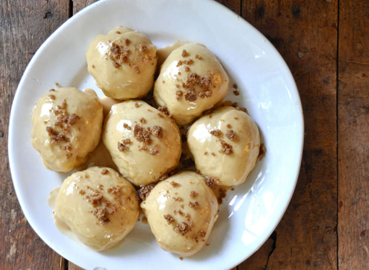 This vegan donut recipe uses soymilk, maple syrup, coffee, and a streusel topping to get its mouthwatering taste and amazingly fluffy texture. An added bonus is that these donuts can easily be made in the oven on a cookie sheet, which saves on both time and effort.