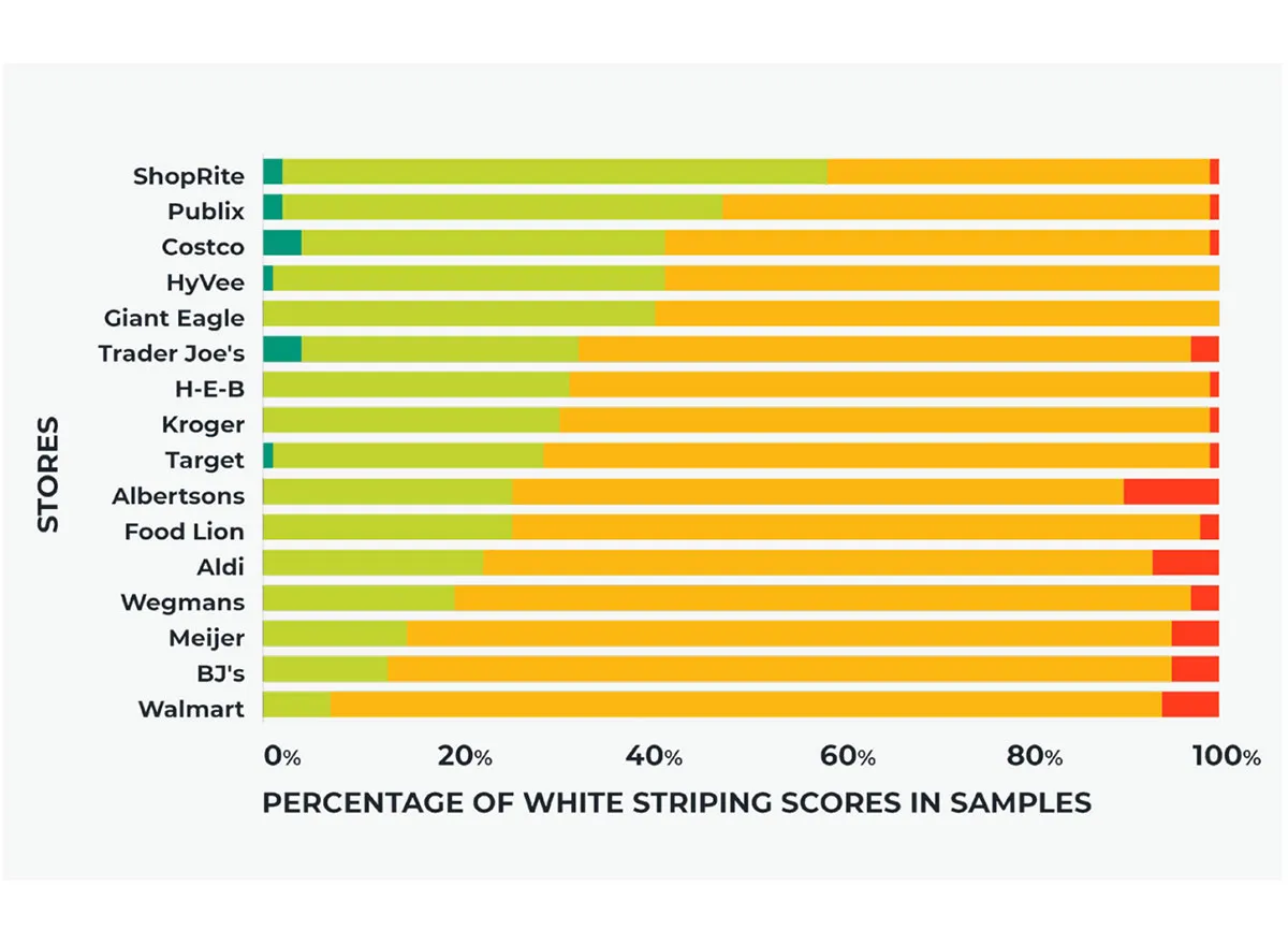 Three major grocers sold chicken with the greatest prevalence of white striping disease