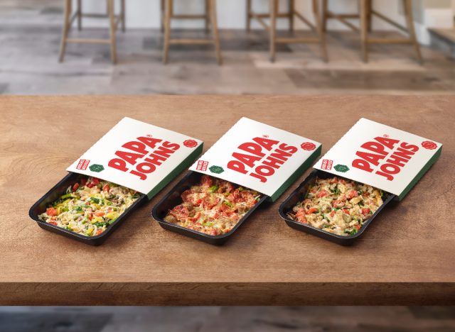 For those seeking a vegetarian option, the Garden Veggie Papa Bowl has a mix of spinach, mushrooms, onions, green peppers, tomatoes, and banana peppers. It’s layered with the chain’s signature pizza sauce, and like the other two varieties, is topped with a combination of three melted cheeses and Italian seasoning.