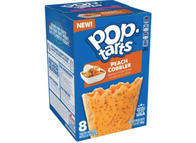 Although these sound delicious, there is not a lot of actual fruit in the new Peach Cobbler Pop-Tarts. You will find something called “peach powder” and “peach juice concentrate,” but well before that you will find corn syrup, high fructose corn syrup, palm oil, sugar, and other junk. One reviewer compared the flavor to peach candy or gum.