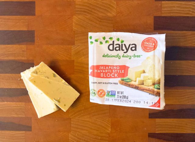 There are two main things I’m always worried about when it comes to trying a non-dairy cheese: flavor and texture. But I’ll hand it to Daiya, their Jalapeño Havarti Style Block Cheese delivered in both categories.