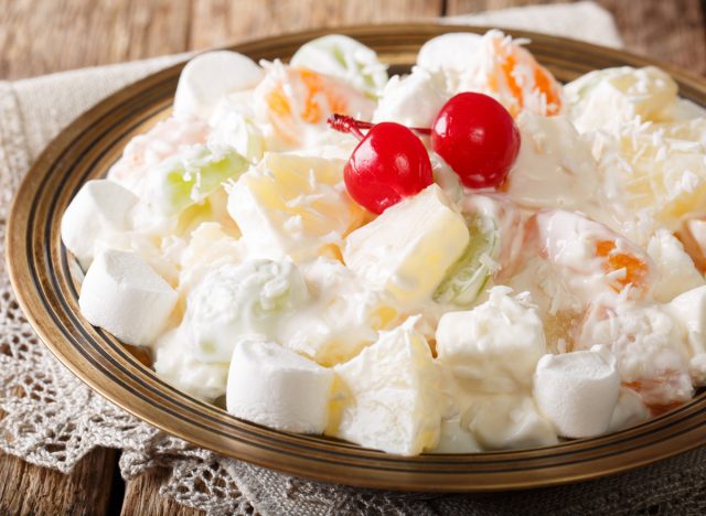 Historically, ambrosia was the magical fruit of the gods in Greek mythology, imparting the gift of immortality on anyone that consumed it. We’re not sure if people in the Midwest feel that way about this marshmallow-laced fruit salad, but it’s been a staple for family dinners in the area. This is one of those times that the food traditions bridge with the Southern U.S. There, ambrosia is also a popular family holiday treat. We wrote about Ambrosia Salad when we talked about nostalgic foods. It certainly calls up the feeling of midwestern dinners shared around the table with family and friends.