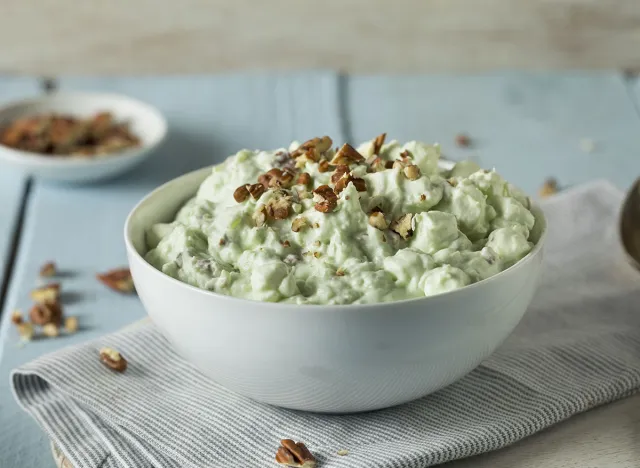 Also called ‘Watergate Dessert,’ this midwestern sweet delight comes together fast to be the ideal easy dish. Combined with pineapple and pistachio pudding, this colorful mix is a popular choice for picnics and potlucks.