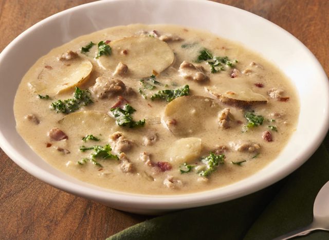 If you prefer soup over salad, Olive Garden offers four different choices to sink your spoon into. One hearty option is the Zuppa Toscano, which consists of a creamy broth with spicy Italian sausage, fresh kale, and russet potatoes.