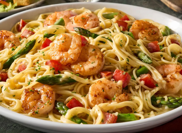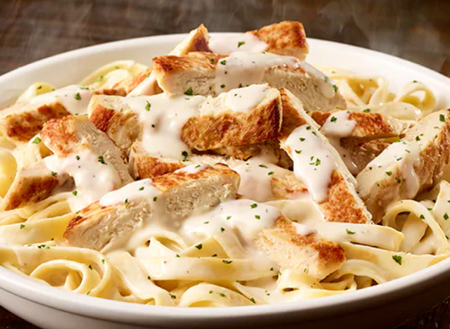 The creamy, rich, comforting fettuccine alfredo is legendary at Olive Garden, with chefs even giving the meal props. Chef Roderick (Pete) Smith, a culinary innovator with years of experience at top-tier establishments, including his tenure at the prestigious Salamander Resort, revealed that the shrimp alfredo is his go-to chain pasta dish at OG. “Known for its creamy sauce and perfectly cooked shrimp, this dish is a crowd favorite among pasta lovers,” he told Eat This, Not That! Personally, I prefer the chicken.