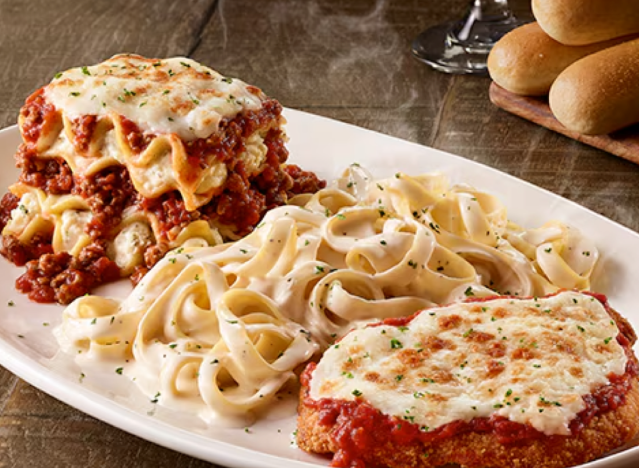 If you want to try a little bit of everything, order the Tour of Italy, which combines three classics into a satisfying combo. The sampler style platter comes with a trio of popular items. “If you want a sampler style. Piece of lasagna with meat sauce and cheese, portion of fettuccine alfredo, and crispy chicken parmesan with marinara and cheese,” an employee recommends.