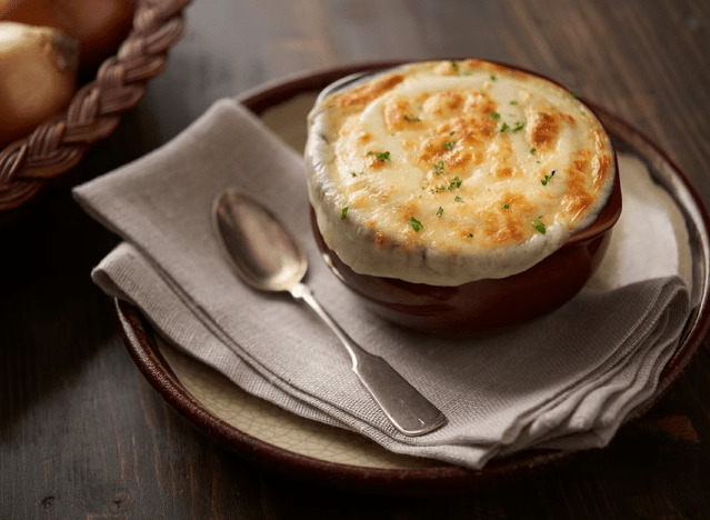 The ultra cheesy French Onion Soup is another starter diners recognize. “Here for lunch, trying their endless soup [and] salad, French onion soup is amazing, best I ever [had], house salad is good with tomatoes, their bread is always the best, compared what I have same soup [and] salad at [a different] place, this is the best,” a Yelp review said.