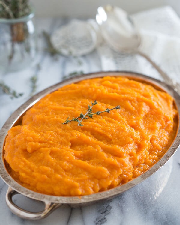 Instead of serving a side of boring mashed potatoes, consider making this rich high fiber puree made with vegan-friendly vanilla almond milk and maple syrup. The immunity-boosting and healthy skin-promoting carrots lend this recipe its gorgeous amber color, as well as a slightly savory flavor that balances out the sweet parsnip. Mmmm! Seconds, please!