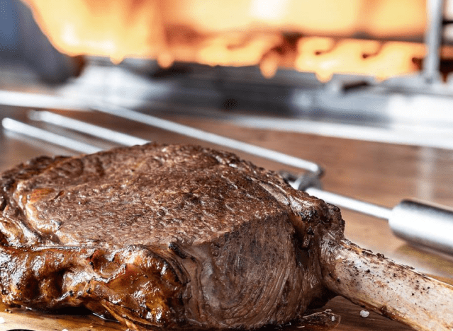 Fogo de Chão has mouthwatering Garlic Mashed Potatoes made with roasted garlic, drawn butter, cracked pepper, and fresh chives. Pair it with the Beef Ancho Bone-in Ribeye for a truly spectacular meal. “Arguably one of the most popular cuts in the world, the ancho requires a unique cooking technique to bring out its intense profile,” the restaurant says. “We grill over direct heat to break down the marbling and deliver an unforgettable texture and distinct flavor.”