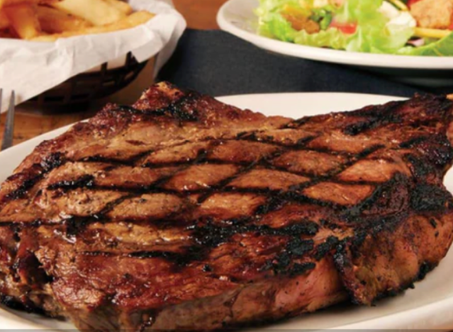 While dining at Outback Steakhouse, the bone in ribeye is a favorite among red meat aficionados. Diners also seem to love their baked potatoes loaded with the toppings as a pairing for the ribeye steak, perfect for soaking up some of that salty, savory juice left behind by the steak.