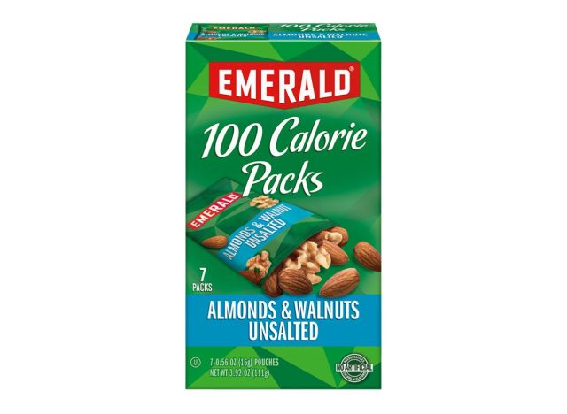 Emerald offers a variety of 100-calorie packs like their Dry Roasted Almonds, Cashews Roasted & Salted, or our personal favorite, the Almonds & Walnuts.