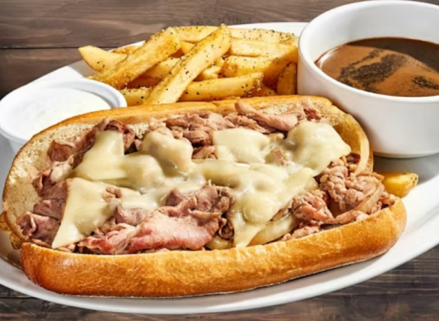 Applebee’s Prime Rib Dipper ($15.29) is well worth a try: This sandwich is made with thinly sliced prime rib topped with grilled onions and melted American cheese, served on a toasted Cheddar roll with house-made herb mayo and French onion au jus for delectable dipping. Served with classic fries, this is a hearty option that offers great value.