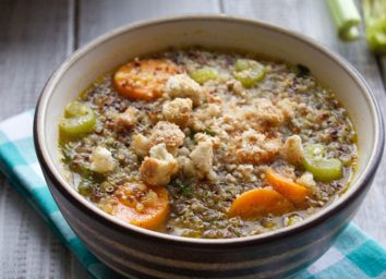- Cook the onion and carrot until softened, then stir in the quinoa and cook until lightly toasted and giving off a nutty smell, about 3 minutes.