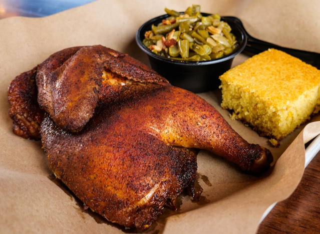 Barbecue chicken may seem like one of the simplest items on a menu, but chefs know it’s anything but because there’s little room for error–too hot and it dries out, too cool and it never develops the depth of flavor that defines great barbecue.”BBQ chicken is one of the trickiest meats to smoke perfectly,” says butcher and chef Thomas Odermatt, Founder of Roli Roti Food Trucks and Butcher’s Bone Broth. “Slow, indirect cooking, paired with careful basting, is key to achieving tender, flavorful results with just the right touch of smoke.” According to Chef Thomas, the secret is “patience” and “proper smoke.” Barbecue chicken is a menu staple across the U.S., and a select few chains have perfected the dish, according to culinary pros we spoke to. Here are the top six chains where chefs say you can get standout barbecue chicken.