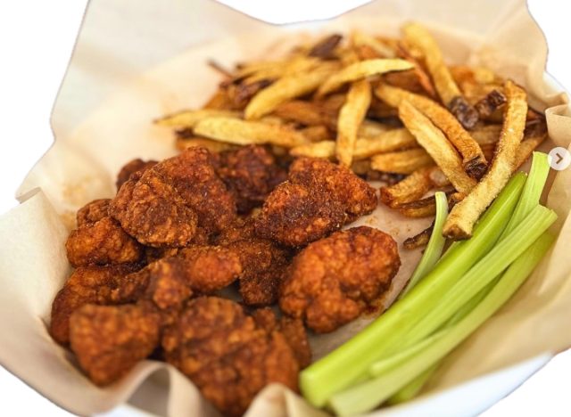 Atomic Wings is a smaller chain that started in 1989 in New York and is beloved for its fresh wings and top quality. Plus, it’s a wing joint where vegans can eat. On Yelp, one reviewer wrote, “I love the fact that they offer vegan & vegetarian wings! it has a very earthy hippie dive bar type of vibe. they had a very clean and neat establishment. I just found out they have multiple locations throughout the United States so if you’re looking for wings and there’s an atomic wings near you, give them a try.!” Another Yelper wrote, “Fantastic wings. The best I tasted. The lemon pepper is the top choice. The decor isn’t bad and fits the space well. The service is excellent too.”
