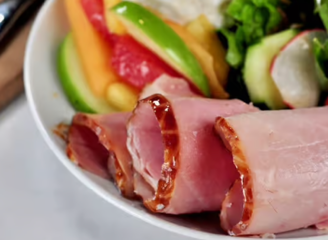 Cracker Barrel serves ham all day long as part of its breakfast menu, and ham can also be picked as a side for any meal. Diners can also opt for a Spiral Sliced Country Ham. This savory, hickory-smoked country cured ham is spiral sliced for easy serving and glazed for happier holidaying, the chain says.