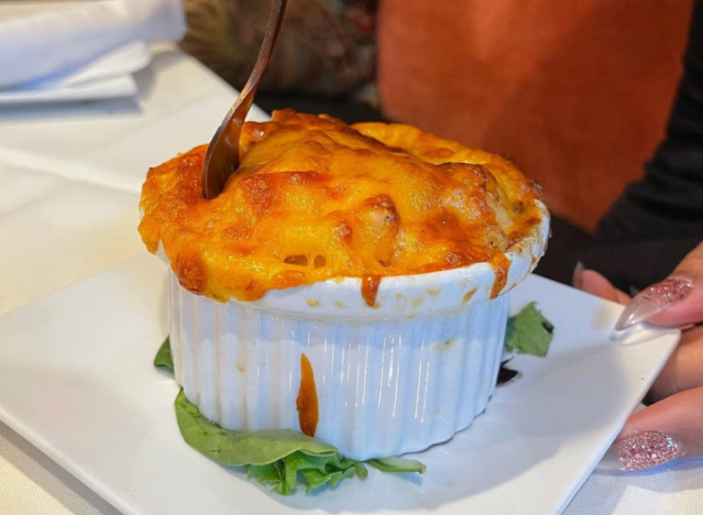 Cracker Barrel Old Country Store is legendary for its Southern-inspired comfort food, like mac and cheese, which Chef Dennis raves about. “The pasta is tender but not mushy, and the sauce has real depth, you can tell they use a blend of cheeses instead of just one. That gives it that creamy, slightly tangy flavor you’d expect from a homemade mac and cheese.” He adds, “What I like most is that it tastes freshly made, not overly processed. When I taste that kind of care in a restaurant chain, I know there’s a chef somewhere in the kitchen who respects the classics. It’s the kind of dish that makes you want to slow down and savor it.”