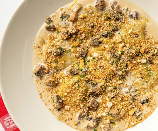 The mushroom ravioli at Maggiano’s Little Italy is an excellent choice for pasta lovers who are bored of ordering baked ziti and spaghetti bolognese. Available as one of the restaurant’s specialties, this dish is prepared with balsamic mushrooms, garlic breadcrumbs, and a deliciously good marsala cream sauce. Enjoy it with an Italian tossed salad or roasted garlic broccoli.