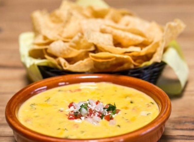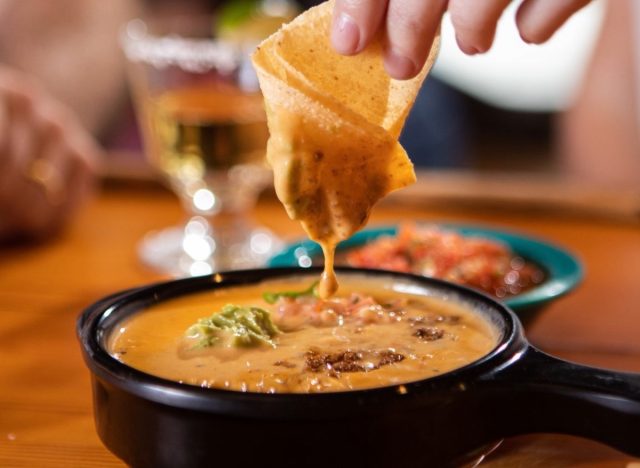 Founded in the 1980s in Alameda, Calif., Chevys Fresh Mex is the casual dining chain known for its made-from-scratch dishes, hand-crafted drinks, and feel-good ambiance. It also has a pretty awesome queso you don’t want to miss. Chevys’ menu features a chile con queso appetizer, which is prepared with chili peppers and served with tortilla chips. While you’re at it, try out the newly launched limited-time NFL player Fred Warner collaboration menu, which includes offerings like the Third Down Dip Trio and Touchdown Tots, both featuring Chevys’ cheesy sauce.