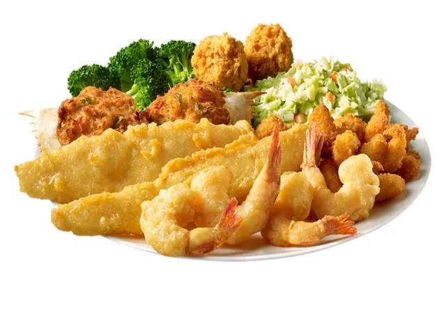 Red Lobster has several combo deals on the menu, including the Admiral’s Feast, which contains Walt’s Favorite Shrimp, wild-caught flounder, clam strips and bay scallops, all crisped to a golden-brown. This combo is served with cocktail and tartar sauces and your choice of two sides.