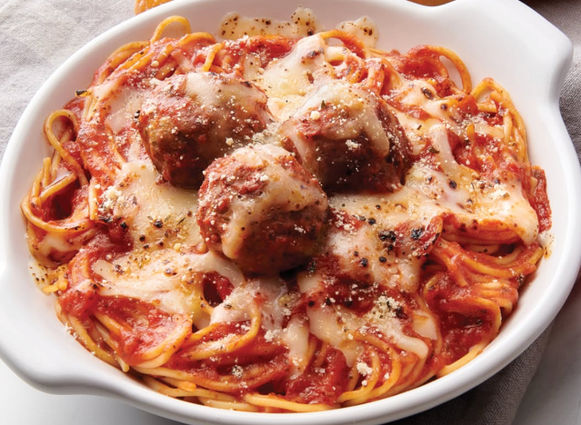 Fazoli’s offers up a delicious Baked Spaghetti with Meatballs dish. “My whole family had dinner from here last night and there was not a single complaint – other than they wanted more! Spaghetti and meatballs was great…next best thing to homemade!” one fan said. “My favorite is the baked spaghetti, comes with meatballs, sausage & cheese & I add pepperoni. Bomb!!” another raved.