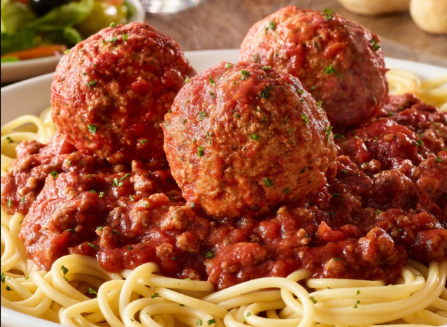 Spaghetti and meatballs is a classic Italian-American dish that is the epitome of good comfort food—the pasta, sauce, and meat all combine to make a perfect meal when you want something simple yet delicious. Many people have their own family recipes they swear by, but there are certain restaurants where diners say this dish is next-level good. Here are six chains with the best spaghetti and meatballs, according to customers.