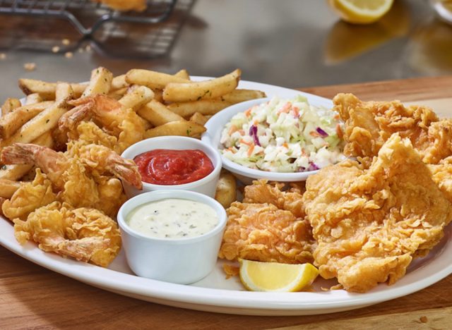 Red Lobster‘s Fish and Chips is made with beer-battered, wild-caught cod served with Chesapeake fries, coleslaw and hush puppies. Diners who want a more traditional seafood plate have options like the Golden-Fried Fish, which is served with ketchup and choice of a side. You can’t go wrong either way!