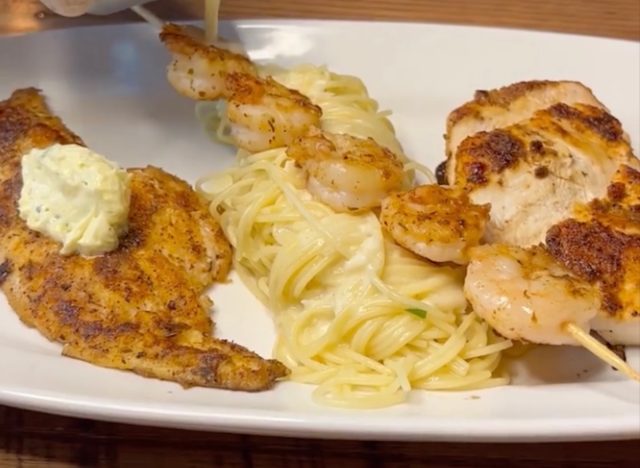 Copeland’s of New Orleans has a Blackened Trio on the menu. Each platter contains Blackened Chicken, Blackened Catfish, and Blackened Shrimp served over angel hair pasta and topped with Lemon Bordelaise Sauce. There’s also a simple Blackened Catfish plate served with Creole shrimp rice and one side.