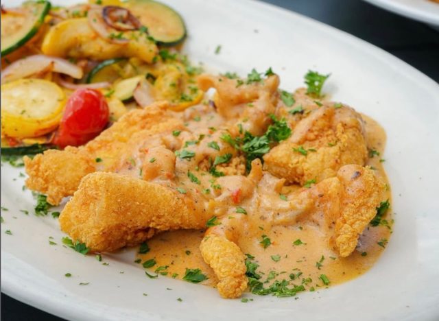 Pappadeaux Seafood Kitchen has Blackened Catfish on the menu served with red beans and rice. There’s also hearty Mississippi Catfish Opelousas, which is made with blackened catfish, oysters, shrimp, lump crab, lemon garlic butter sauce, and dirty rice. For those who want a trout instead, there’s a Rainbow Trout & Jumbo Crab meal with blackened trout, shrimp, jumbo lump crab, hazelnut brown butter, and glazed butternut squash.
